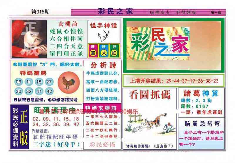 315期单肖:羊猪鸡牛:双肖:虎猴马鼠:开虎04准